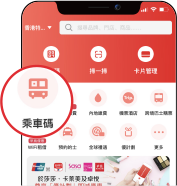 注意:港鐵乘車碼僅適用於香港地鐵,若乘搭巴士或其他交通工具,請點選「乘車碼」使用服務。
